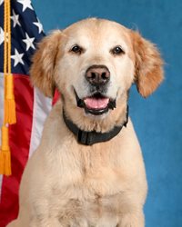 I have been employed by the Jacksonville Sheriff’s Office for over 5 years and joined the K9 unit 9 months ago. Before I was in the canine unit I worked in the area of Northwest Jacksonville. My police canine’s name is Ruger, and he is a 7-year-old Golden Retriever. Ruger is a missing person tracking/narcotics detection dog. While working together, we have successfully removed illegal drugs and firearms from the streets and found a missing runaway child so he could be reunited with his family. We also visit schools and hospitals to demonstrate a positive influence on our future generations. Ruger loves to play and to get rewarded with treats, but his favorite thing is to receive belly rubs from all the kids he comes in contact with!